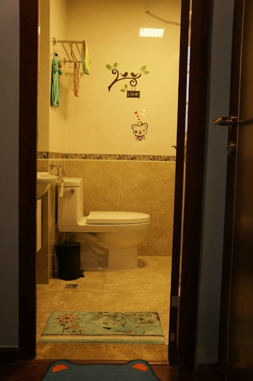 主卫正对面的贴纸,宝宝都爱上洗澡了。