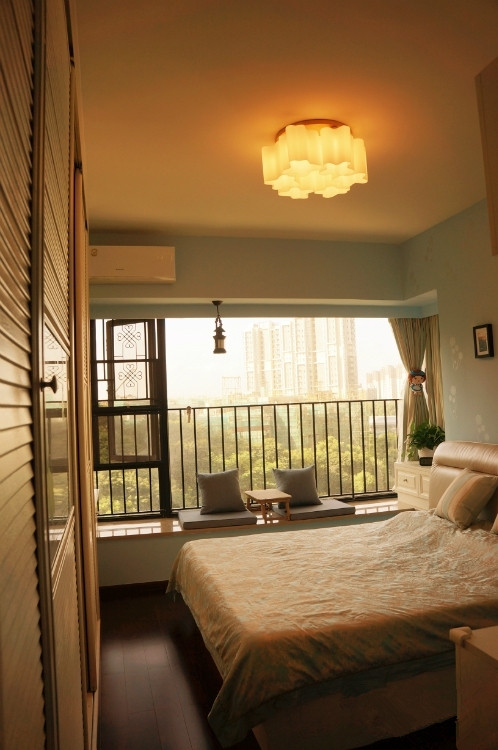 这是之前拍的图片,那时灯都还没安装好,只有纱帘没有窗帘,靠枕也没到,竟也觉得很惬意。