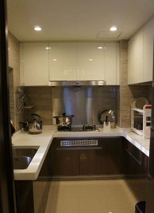 厨房的全貌,凹字形厨房,有了这个厨房,以后一家人可以分工合作,煮饭洗菜两不误。
